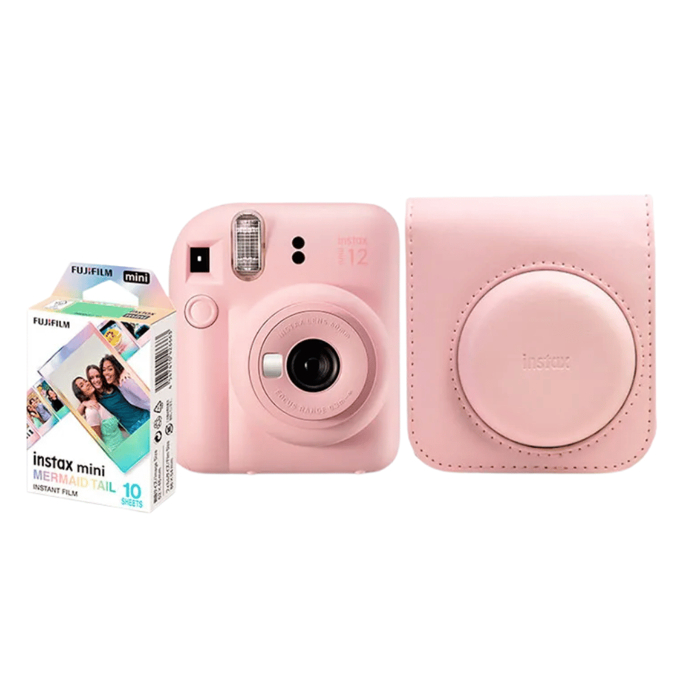 Apresentamos o nosso incrível kit Instax Mini 12! Ele é perfeito para você que adora registrar momentos especiais de maneira única e cheia de estilo. Este kit inclui: